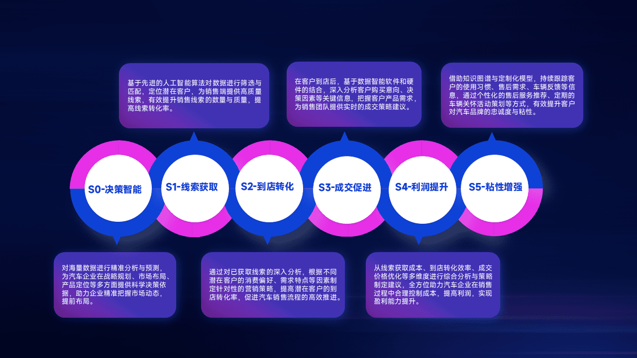通过拓宽潜在客户来源、、优化线索分配并提高到店转化率,,,以增强销售效率。。。同时,,,利用线索数据不断优化分析模型,,有效提升转化率,,,,扩大营销影响力。。。。